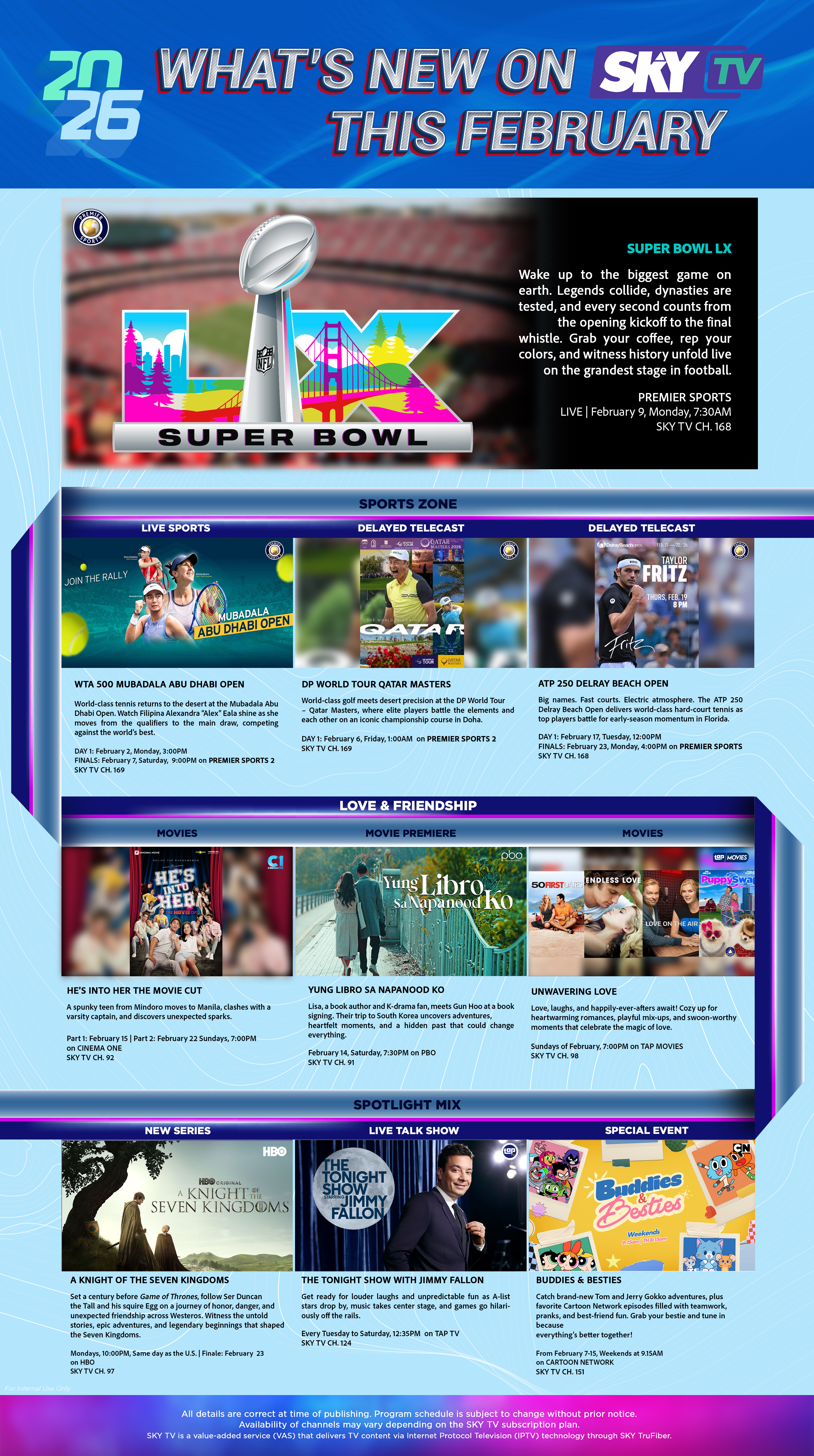 🎾 Championship sports, epic fantasy, and must-watch romance light up SKY this February 💕