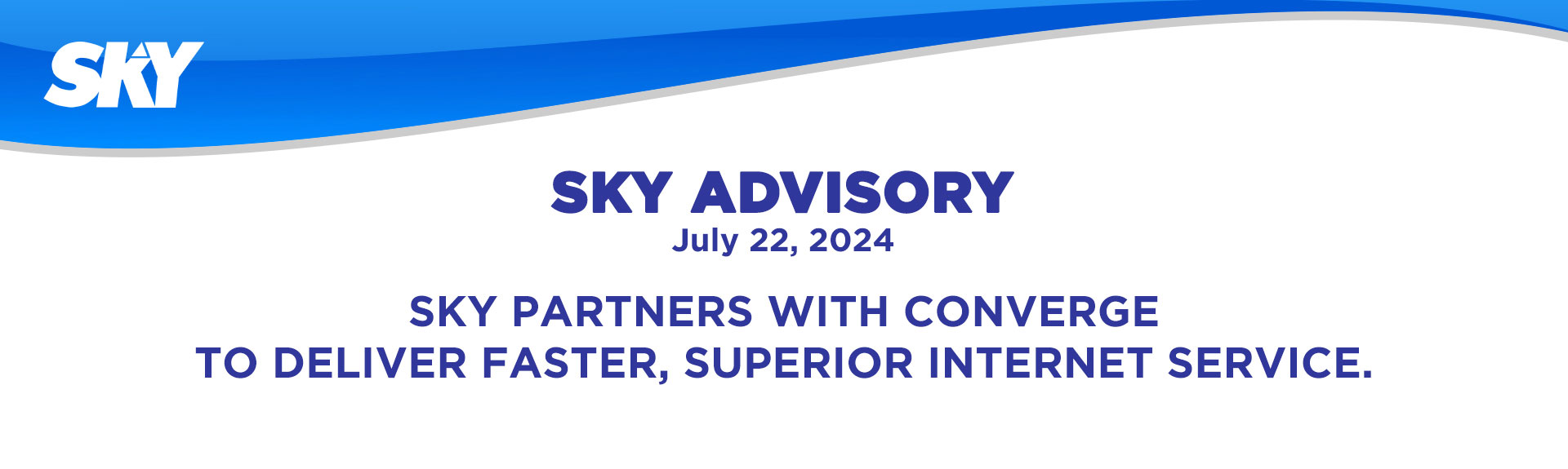 This agreement allows SKY to use the fiber-to-the-home (FTTH) network of Converge, allowing SKY’s customers to experience access to broadband plans with faster speeds and more reliable SKY Fiber service.What will happen to my SKY subscription?